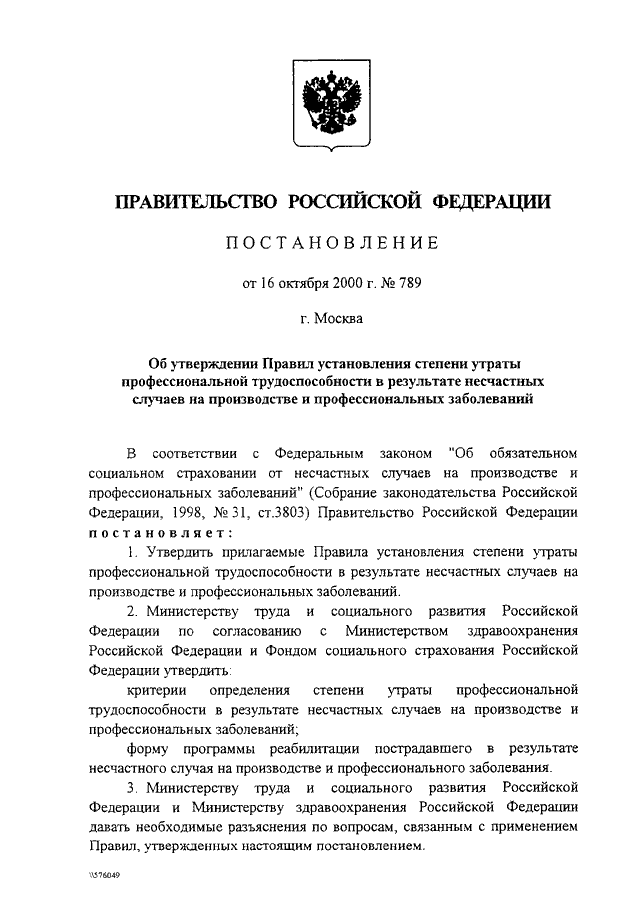 ПОСТАНОВЛЕНИЕ Правительства РФ от 16.10.2000 N 789