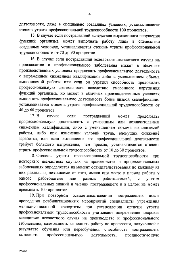 "ОБ УТВЕРЖДЕНИИ ПРАВИЛ УСТАНОВЛЕНИЯ СТЕПЕНИ УТРАТЫ ПРОФЕССИОНАЛЬНОЙ ТРУДОСПОСОБНОСТИ В РЕЗУЛЬТАТЕ НЕСЧАСТНЫХ СЛУЧАЕВ НА ПРОИЗВОДСТВЕ И ПРОФЕССИОНАЛЬНЫХ ЗАБОЛЕВАНИЙ"