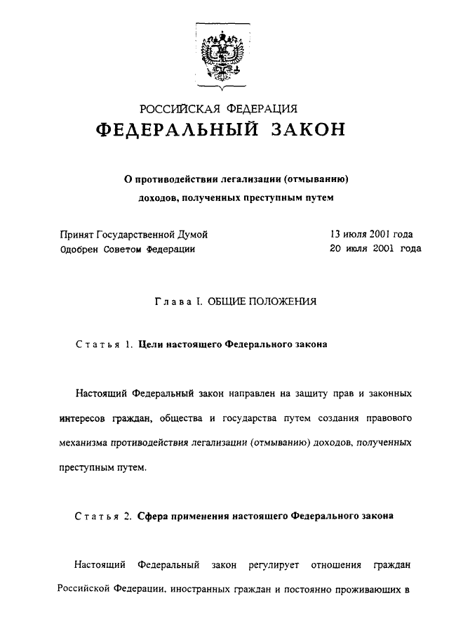 ФЕДЕРАЛЬНЫЙ ЗАКОН от 07.08.2001 N 115-ФЗ