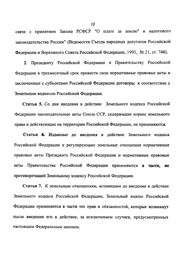 "О ВВЕДЕНИИ В ДЕЙСТВИЕ ЗЕМЕЛЬНОГО КОДЕКСА РОССИЙСКОЙ ФЕДЕРАЦИИ"