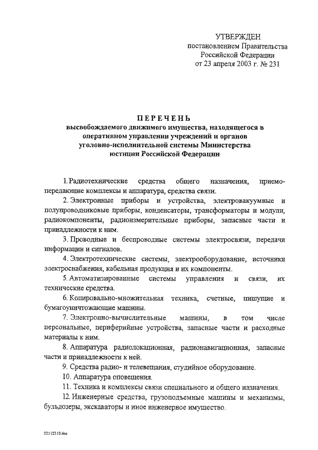 ПОСТАНОВЛЕНИЕ Правительства РФ от 23.04.2003 N 231