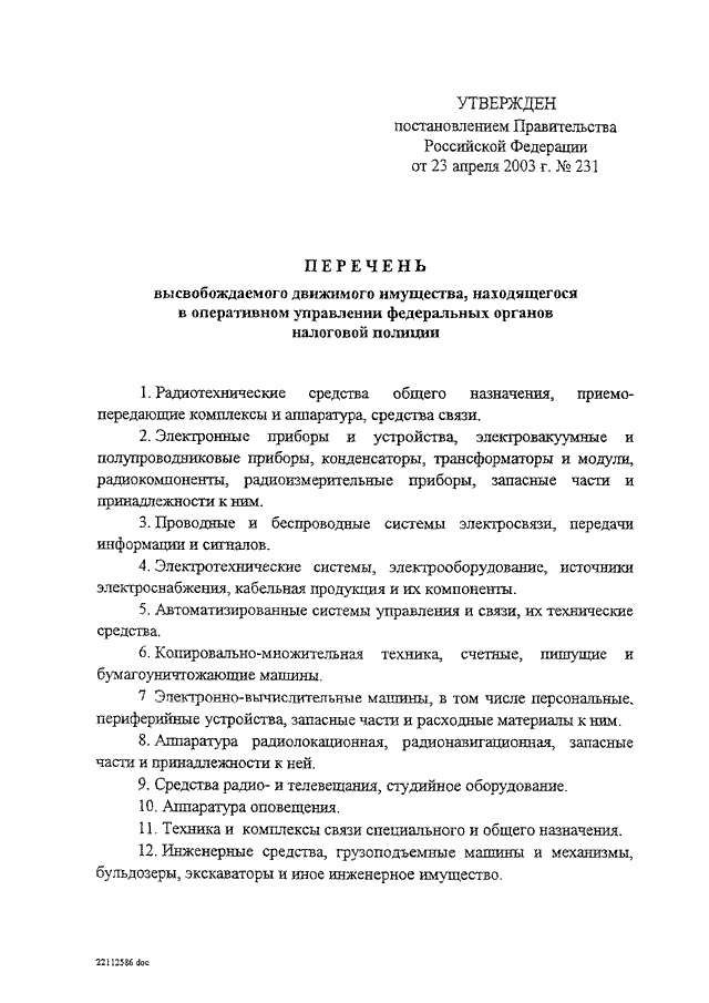 ПОСТАНОВЛЕНИЕ Правительства РФ от 23.04.2003 N 231