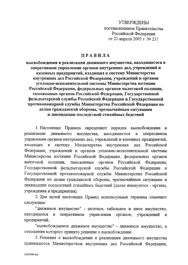 ПОСТАНОВЛЕНИЕ Правительства РФ от 23.04.2003 N 231