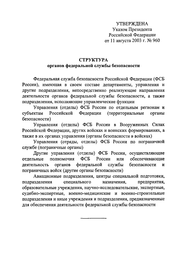 УКАЗ Президента РФ от 11.08.2003 N 960