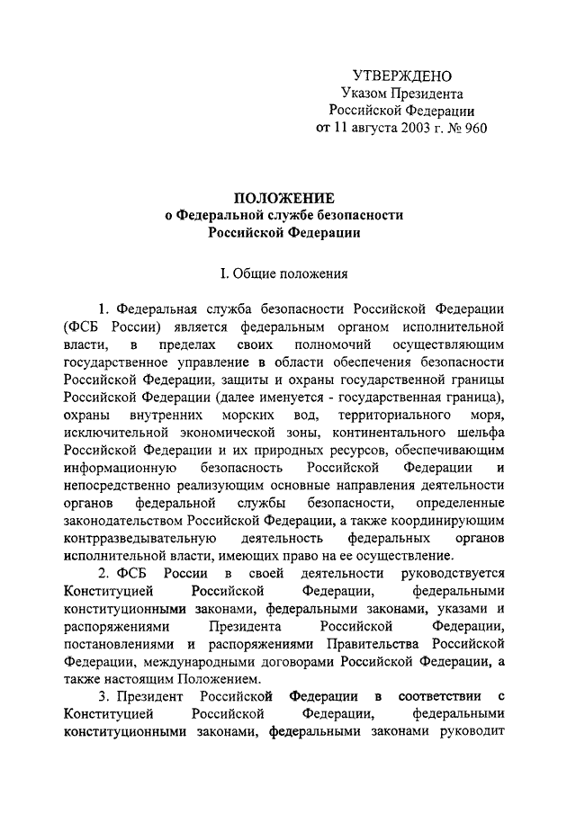 УКАЗ Президента РФ от 11.08.2003 N 960