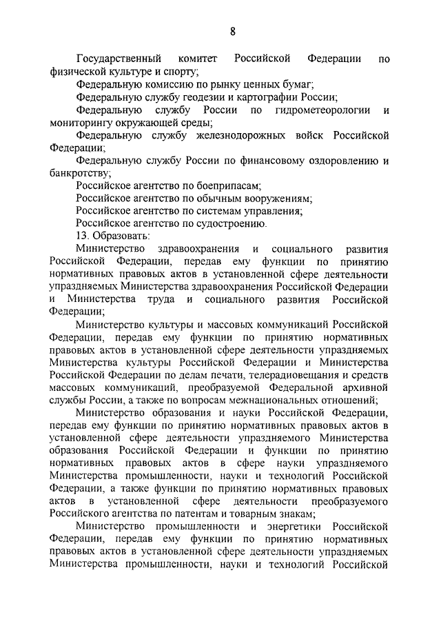 "О СИСТЕМЕ И СТРУКТУРЕ ФЕДЕРАЛЬНЫХ ОРГАНОВ ИСПОЛНИТЕЛЬНОЙ ВЛАСТИ"