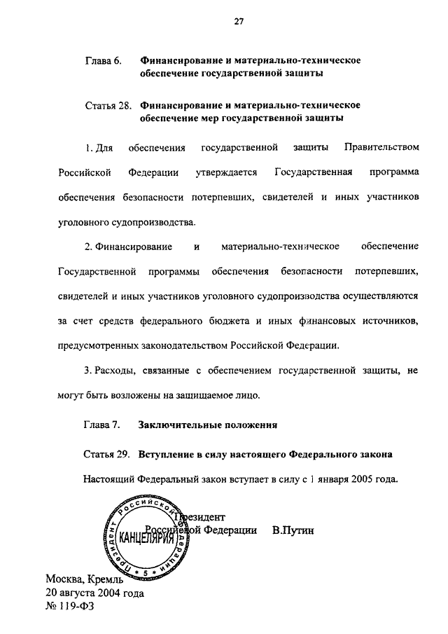 ФЕДЕРАЛЬНЫЙ ЗАКОН от 20.08.2004 N 119-ФЗ
