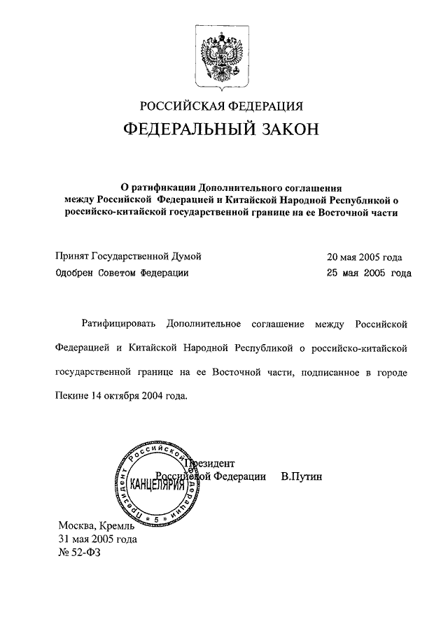 ФЕДЕРАЛЬНЫЙ ЗАКОН от 31.05.2005 N 52-ФЗ