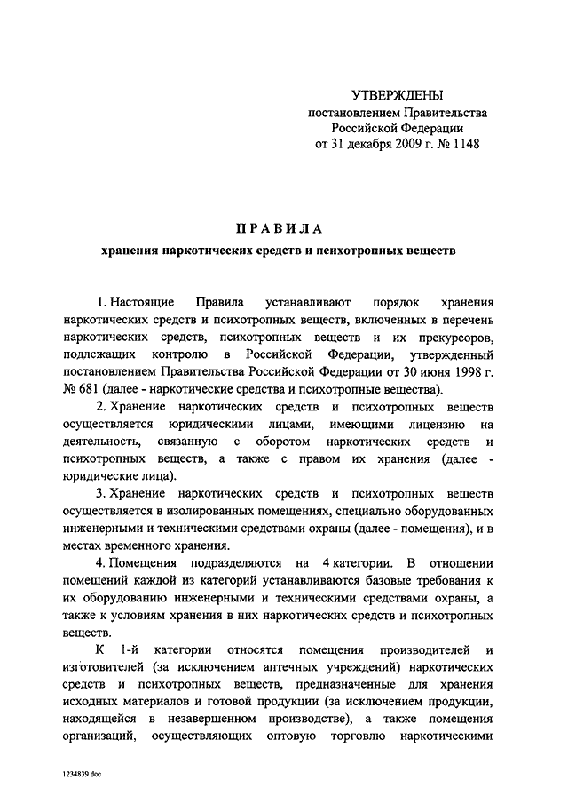 "О ПОРЯДКЕ ХРАНЕНИЯ НАРКОТИЧЕСКИХ СРЕДСТВ И ПСИХОТРОПНЫХ ВЕЩЕСТВ"