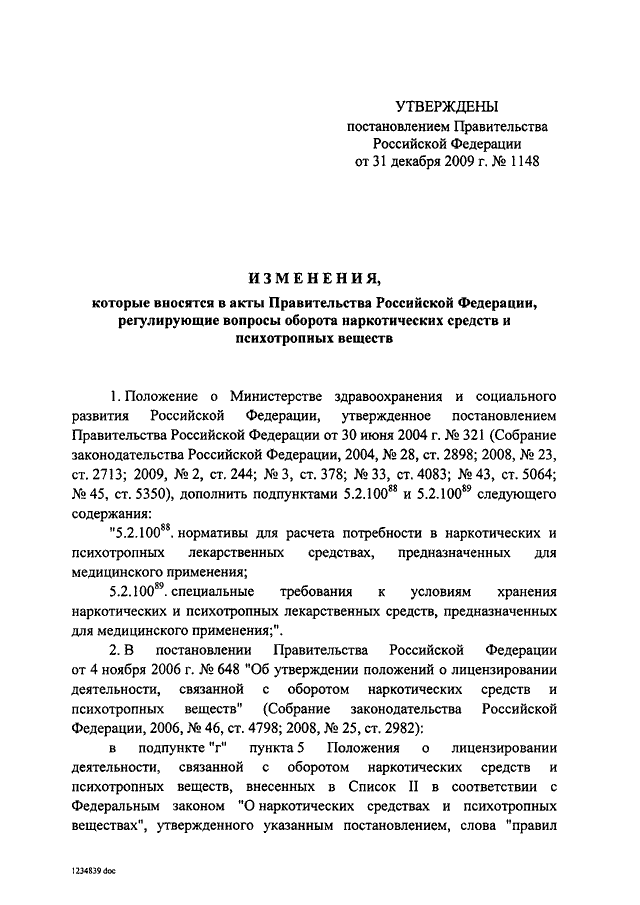 ПОСТАНОВЛЕНИЕ Правительства РФ от 31.12.2009 N 1148