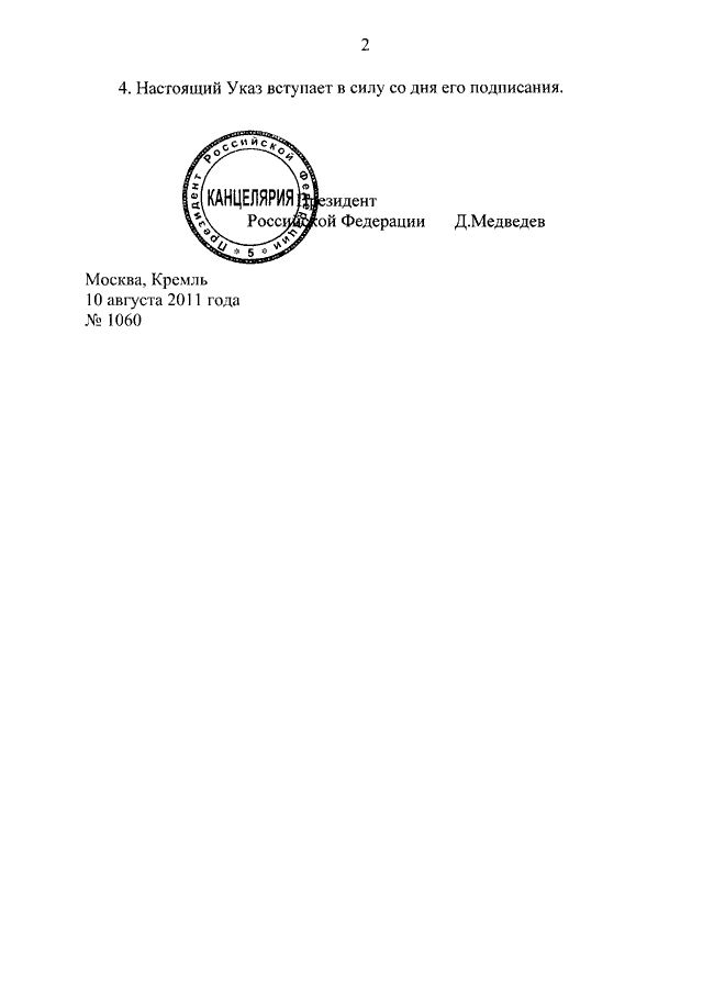 УКАЗ Президента РФ от 10.08.2011 N 1060