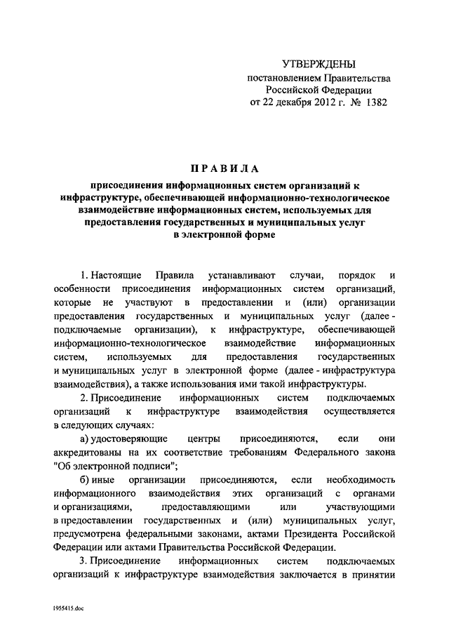 ПОСТАНОВЛЕНИЕ Правительства РФ от 22.12.2012 N 1382