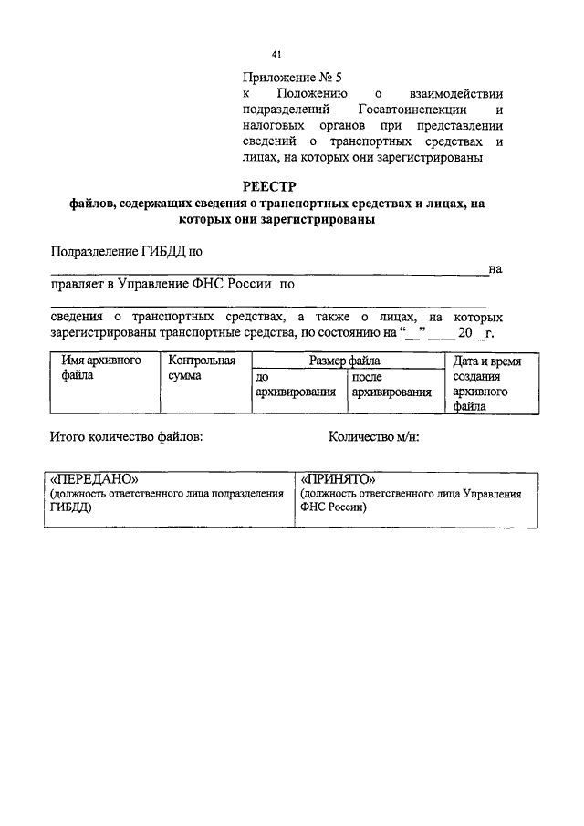 "ОБ УТВЕРЖДЕНИИ ПОЛОЖЕНИЯ О ВЗАИМОДЕЙСТВИИ ПОДРАЗДЕЛЕНИЙ ГОСАВТОИНСПЕКЦИИ И НАЛОГОВЫХ ОРГАНОВ ПРИ ПРЕДСТАВЛЕНИИ СВЕДЕНИЙ О ТРАНСПОРТНЫХ СРЕДСТВАХ И ЛИЦАХ, НА КОТОРЫХ ОНИ ЗАРЕГИСТРИРОВАНЫ"